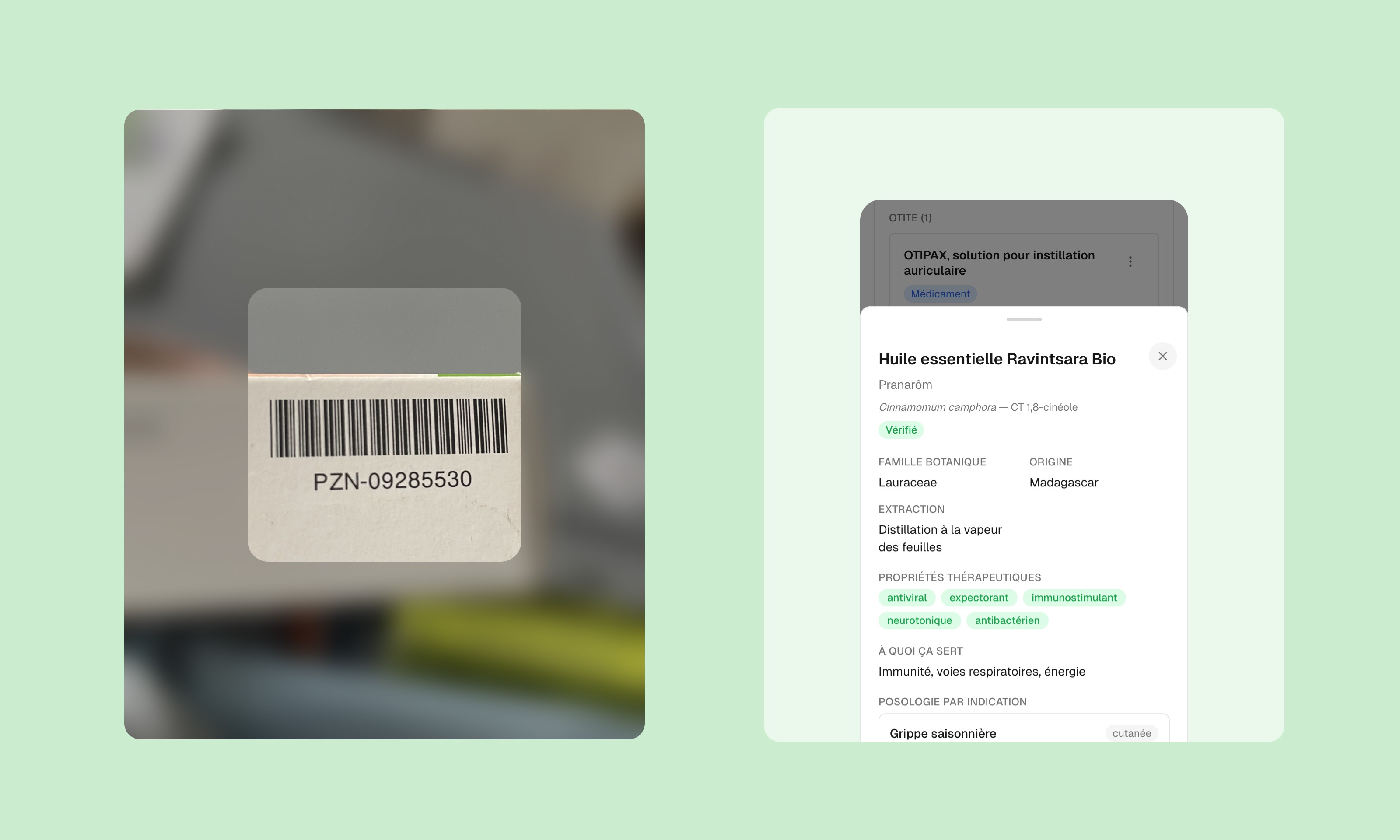 I couldn't find an app that lets you search your own meds by what they treat. Market research confirmed the gap: existing apps focused on reminders or prescriptions, none on inventory. I shaped a value proposition around one idea: scan a barcode, get the full picture of what you have and what it does. Then prototyped the core flow to test if it held up.